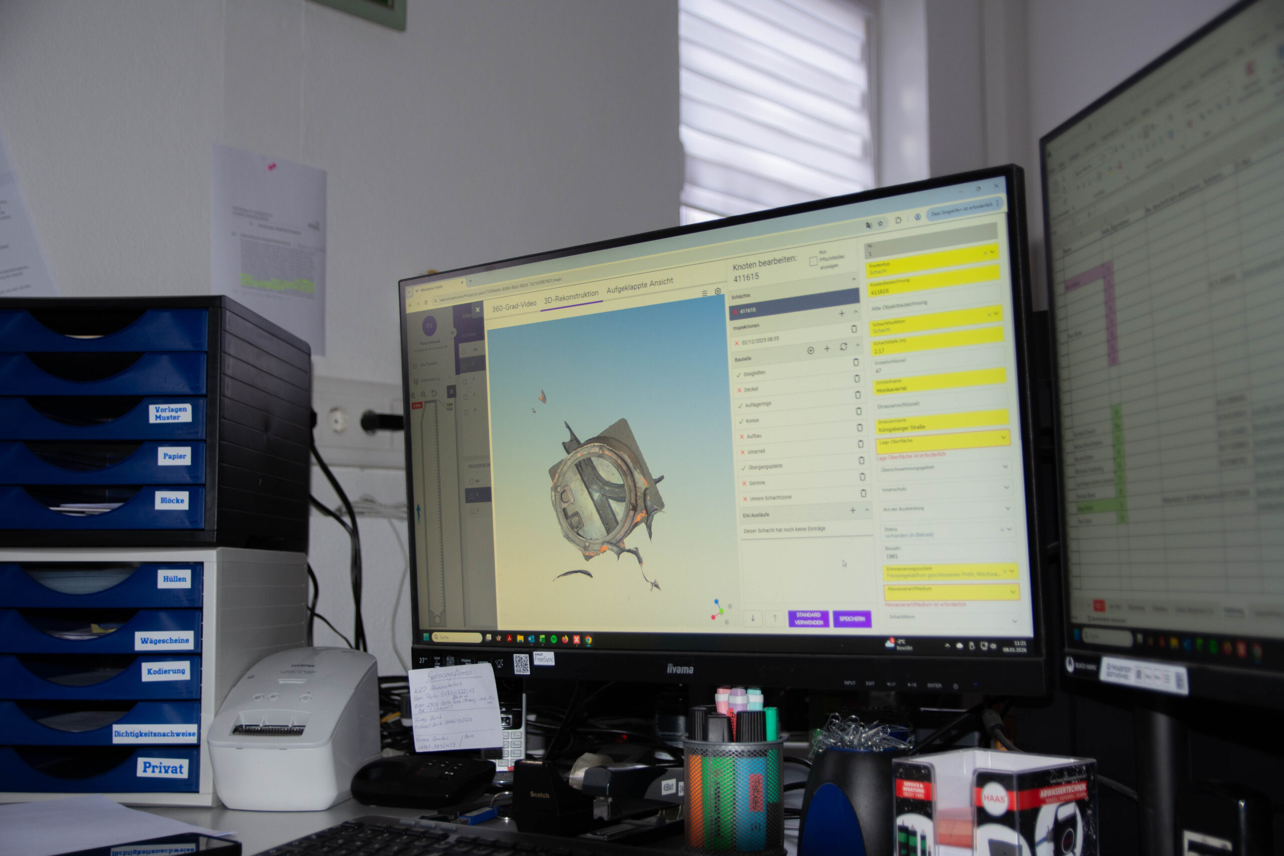 Ein wesentliches Leistungsmerkmal einer TV-Kanalinspektion ist die Erfassung der Untersuchungsdaten in der EDV und die Einspielung auf Kundenrechner, die Darstellung der Untersuchungsprotokolle und die digitale Aufnahmetechnik der Befahrung an sich. Wir erfassen mit dem Programm „PipeCommander“ der Fahrzeugaufbaufirma Rausch, das uns alle erforderlichen Werkzeuge in Zusammenhang mit Erfassung, Darstellung, Bearbeitung und Übergabe von Daten bietet. Mehrere Schadenskataloge zur Erfassung der Daten stehen zur Verfügung, alle gängigen Schnittstellen für den Datenexport sind gegeben.